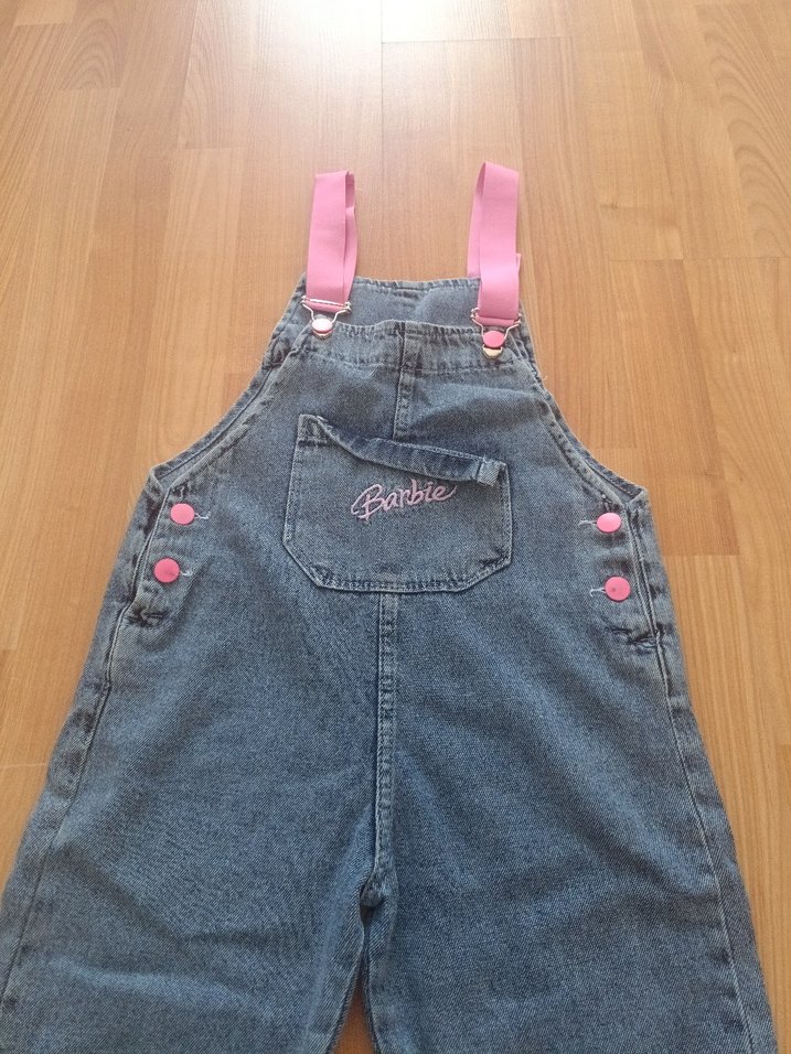 Kızlar için renkli nakışlı pembe askılı kot tulum