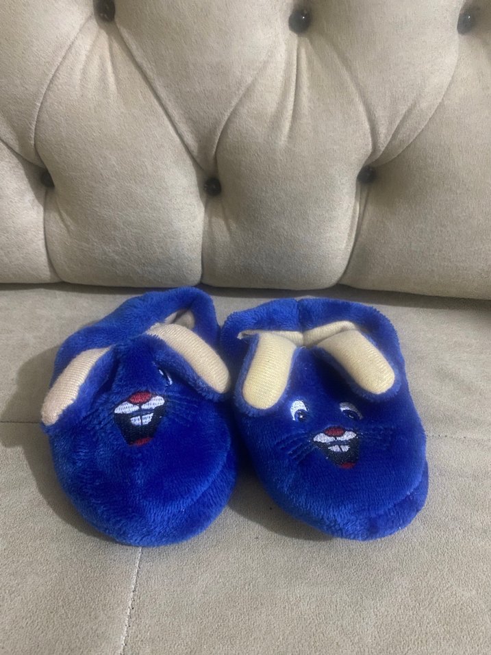 Nakışlı hayvan figürlü, kürklü detaylı, renkli mavi polar kumaştan kız çocukları için sıcak terlikler. Bohem ve retro tarzda sokak modasına uygun.