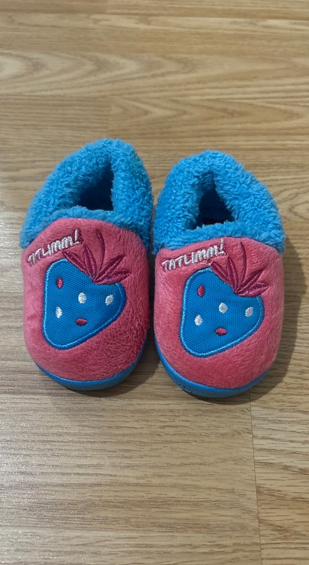 Kızlar için renkli, nakışlı çilek desenli, yumuşak dokulu sıcak terlikler. Rahat ve günlük kullanım için uygundur.