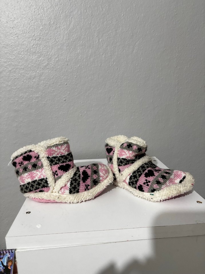 Kızlar için renkli örgü terlikler, bağlama desenli ve yumuşak iç astarlı. Bohem tarzı, retro hippie havası katıyor.