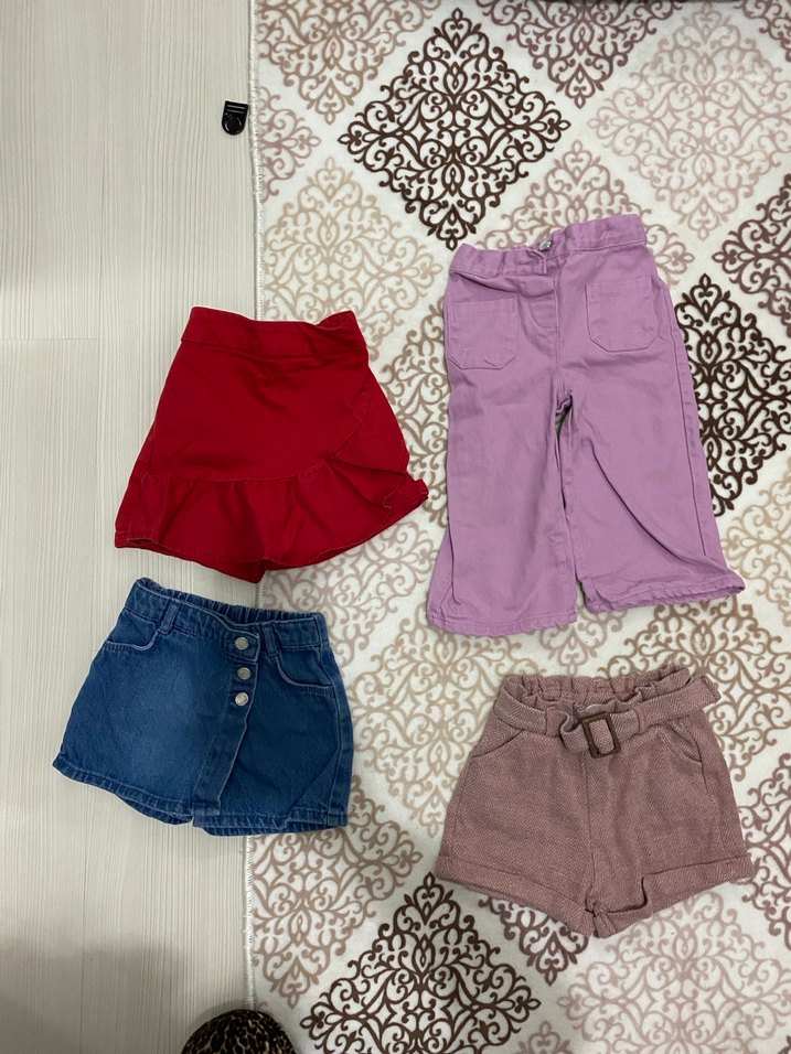 Kızlar için Renkli Pamuklu Kemerli Şortlar