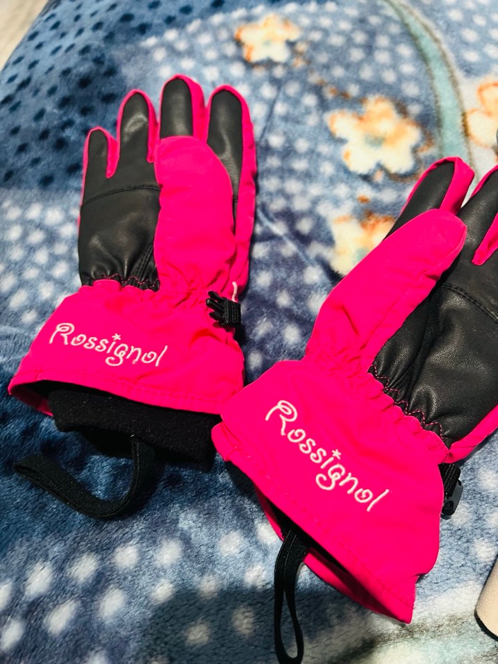 Renkli baskılı, yumuşak ve sıcak polar kumaştan yapılmış, kızlar için rock punk tarzında pembe eldivenler. Ayarlanabilir cırt cırtlı bantlı ve Rossignol logolu. 8 yaş diyo ama bence 6 yaş için daha uygun