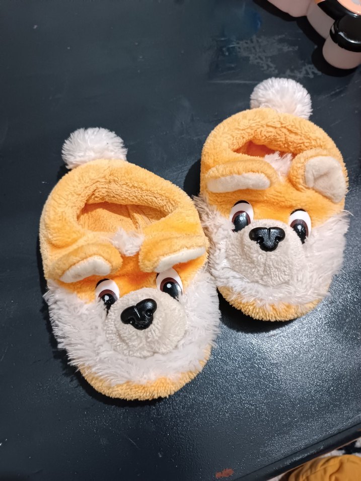 Kızlar için renkli sarı, nakışlı köpek desenli, kürklü sıcak terlikler, rahat sokak stili için uygundur.