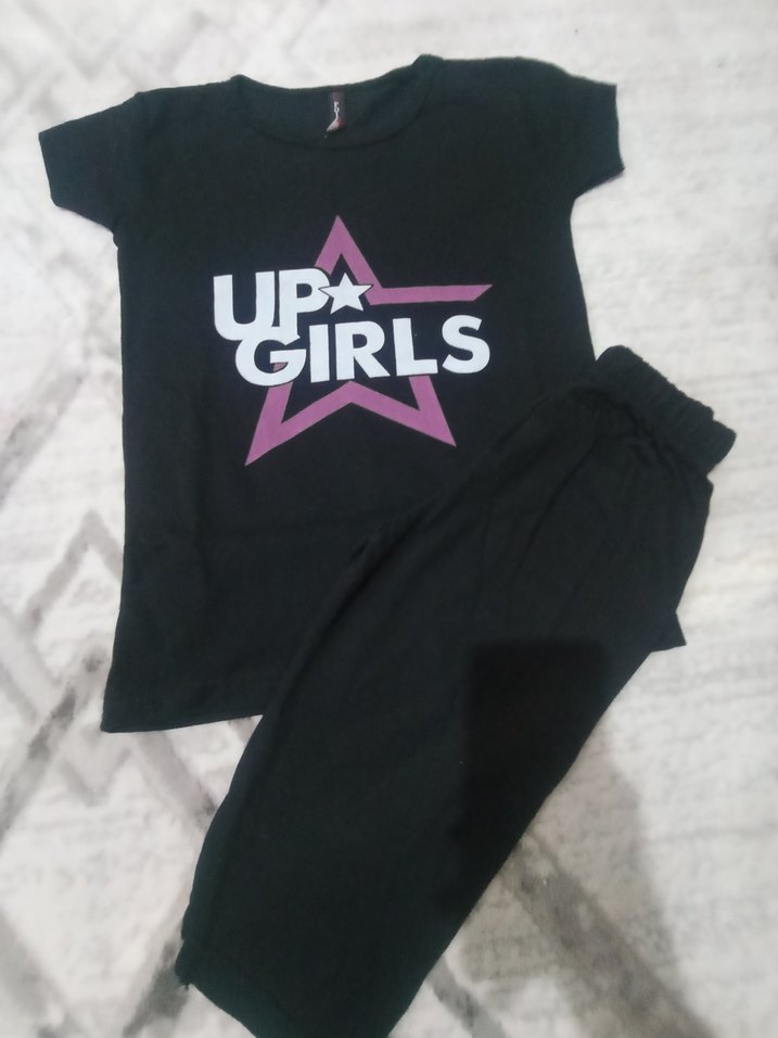 Siyah, baskılı, dar kesim kız tişörtü, yuvarlak yaka ve kısa kolludur. 6 yaşa uygun 0 ürün çekme payı vardır