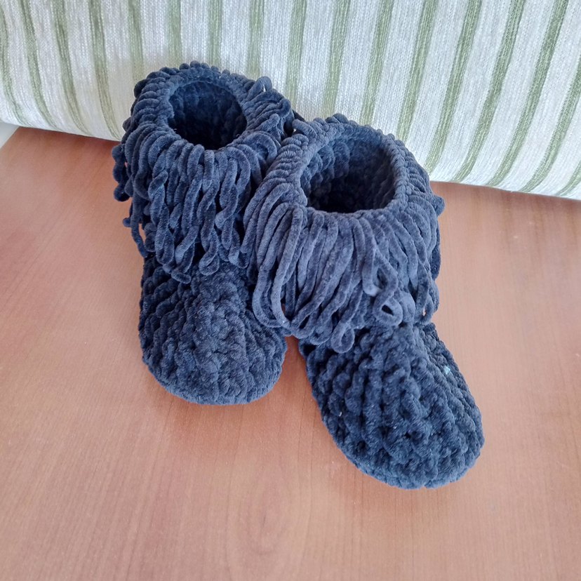 Kızlar için gri renkte, örgü ve bohem tarzda, yumuşak ve sıcak kadife ipten yapılmış ev botu. Püsküllü detaylarıyla rahatlık sağlar.