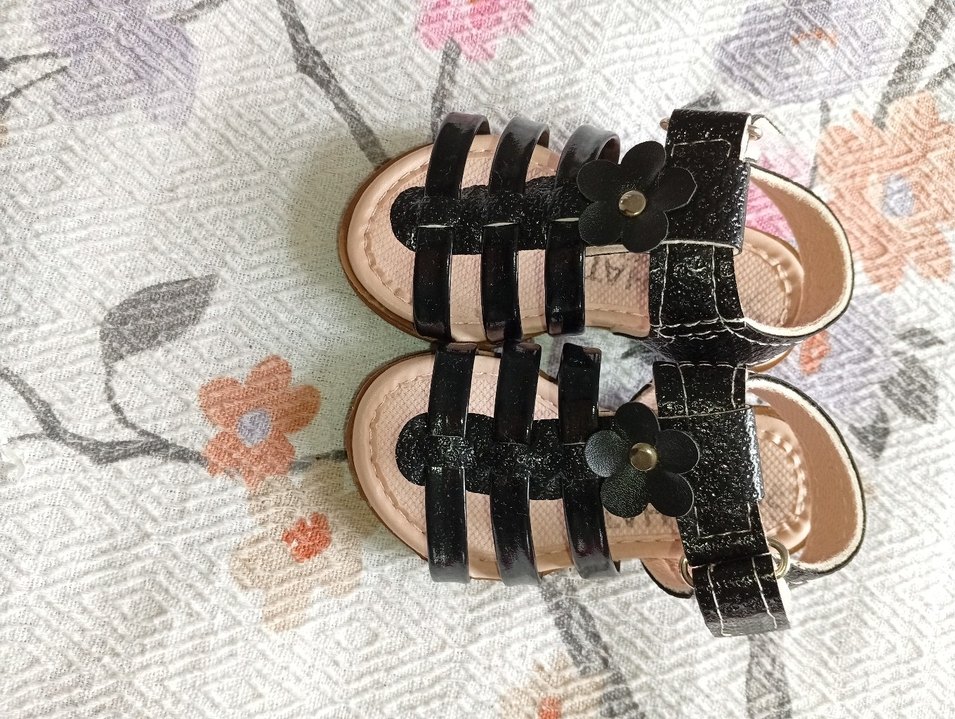 Kızlar için Siyah Çiçekli Tokalı Sandalet