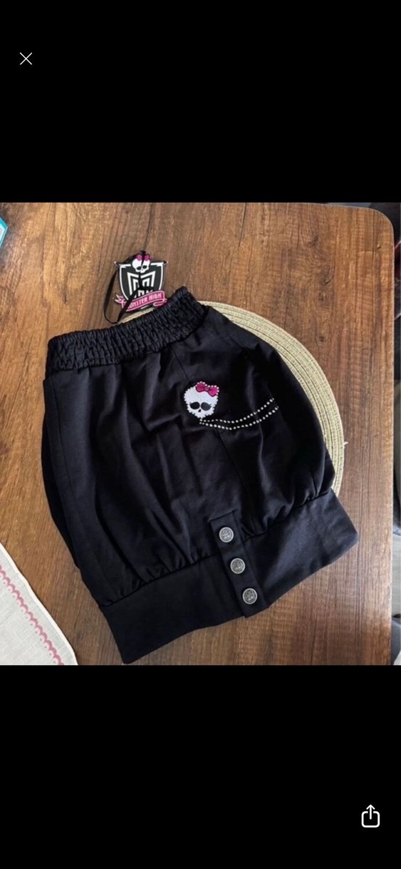 Kızlar için pamuklu, düğmeli, bol kesim siyah pantolon. Nakışlı kafatası deseniyle gotik tarzı yansıtıyor. 9/10 yaş likralı güzel bir etek son fiyat
