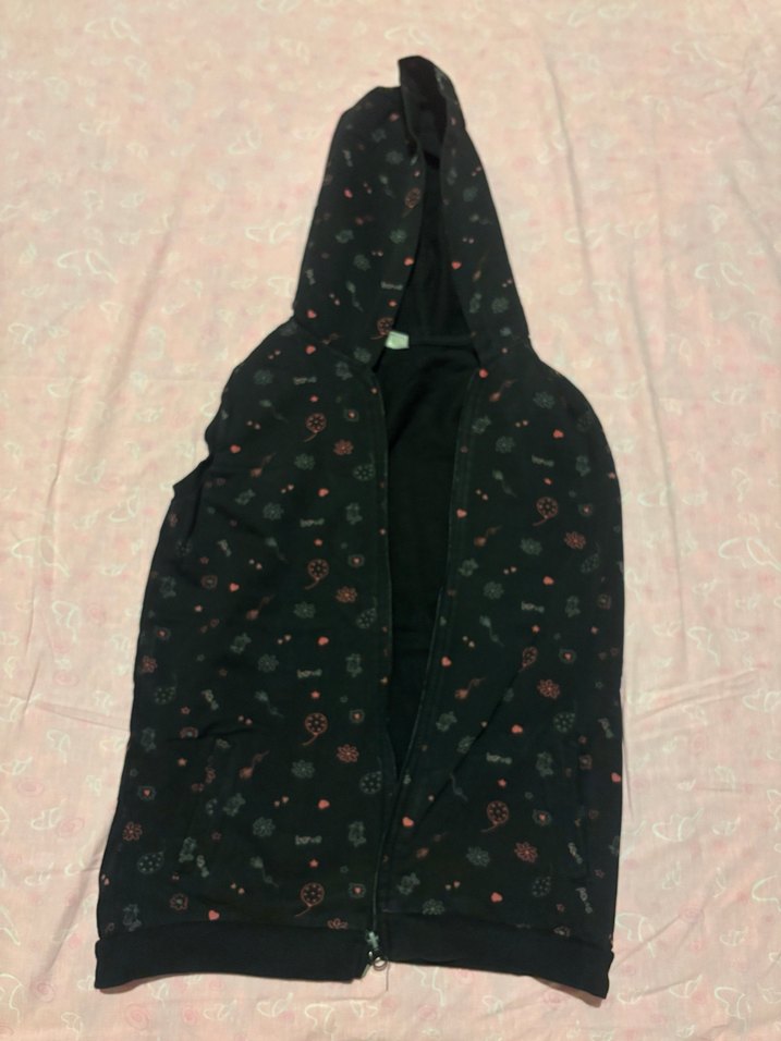 Kızlar için Siyah Kapüşonlu Fermuarlı Ceket
