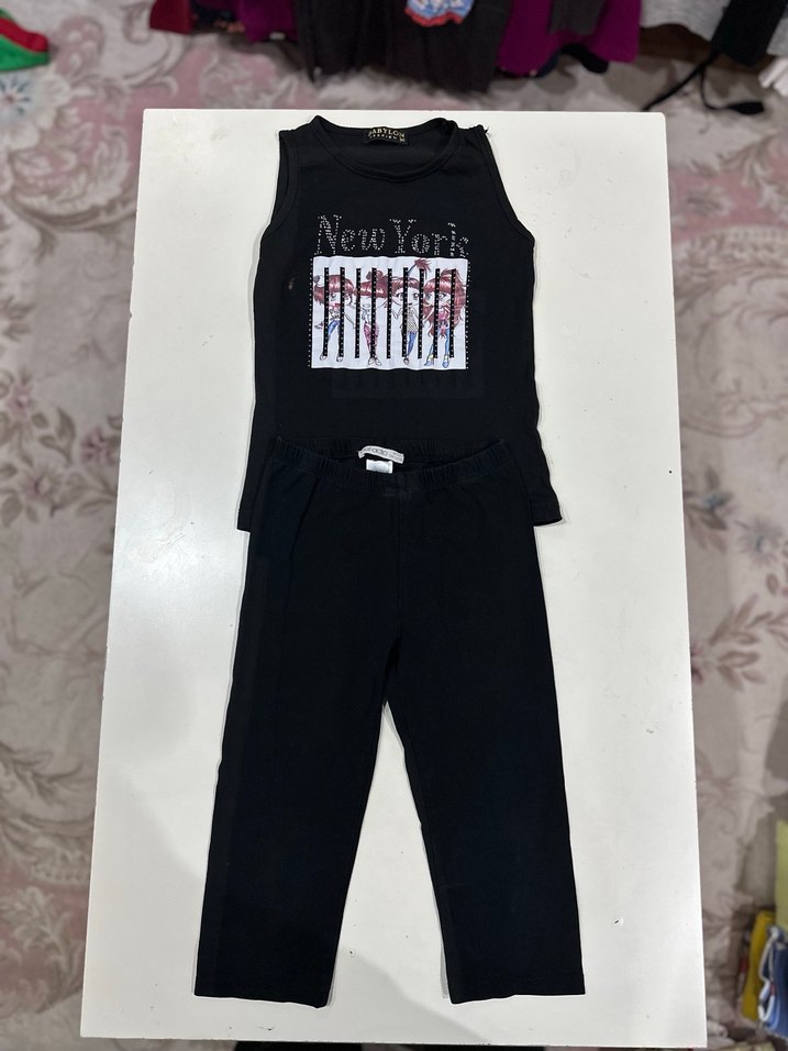 Kolsuz, bisiklet yaka baskılı üst ve kemerli siyah eşofman altından oluşan, yumuşak ve sıcak kumaşlı fitted kızlar için eşofman takımı. 2li kombin tek fiyat.