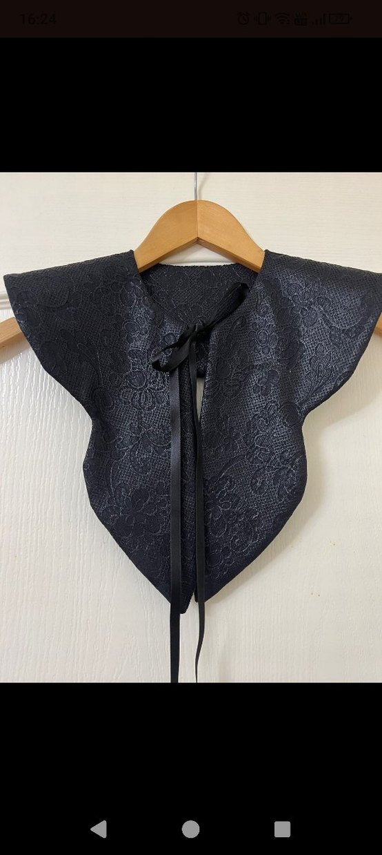 Kızlar için siyah, nakışlı ve drapeli gotik bolero. Sentetik kumaştan, yakalı ve kolsuz, vücuda oturan kesimle tasarlanmıştır.