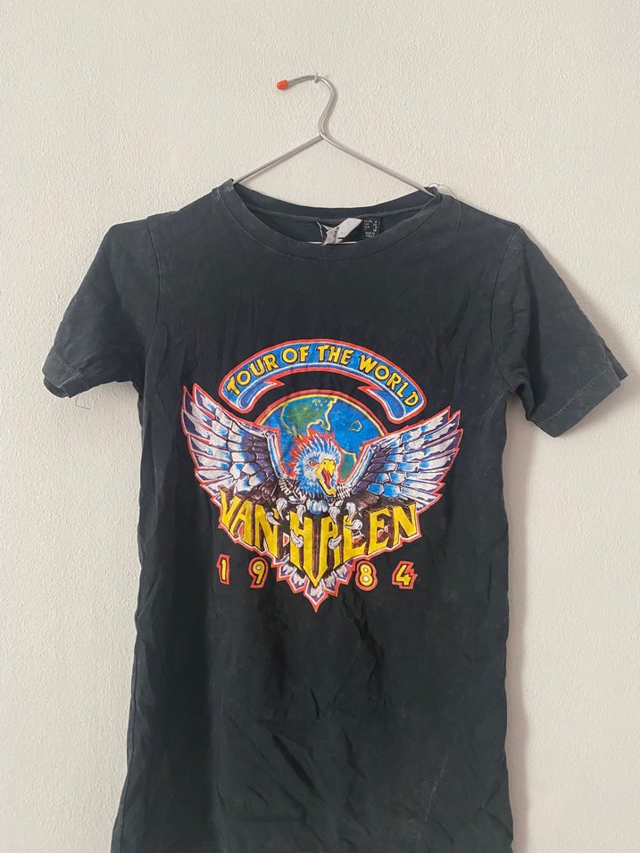Kızlar için siyah, kısa kollu, bisiklet yaka, baskılı ve kemerli rock punk tarzında dar kesim tişört. Denim kumaştan yapılmıştır. Arkası açık ihracaat fazlası sıfır ürün