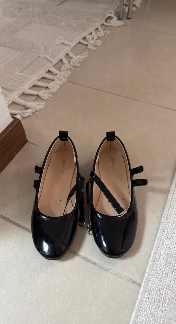 Kızlar için Siyah Rugan Tokalı Bale Ayakkabısı