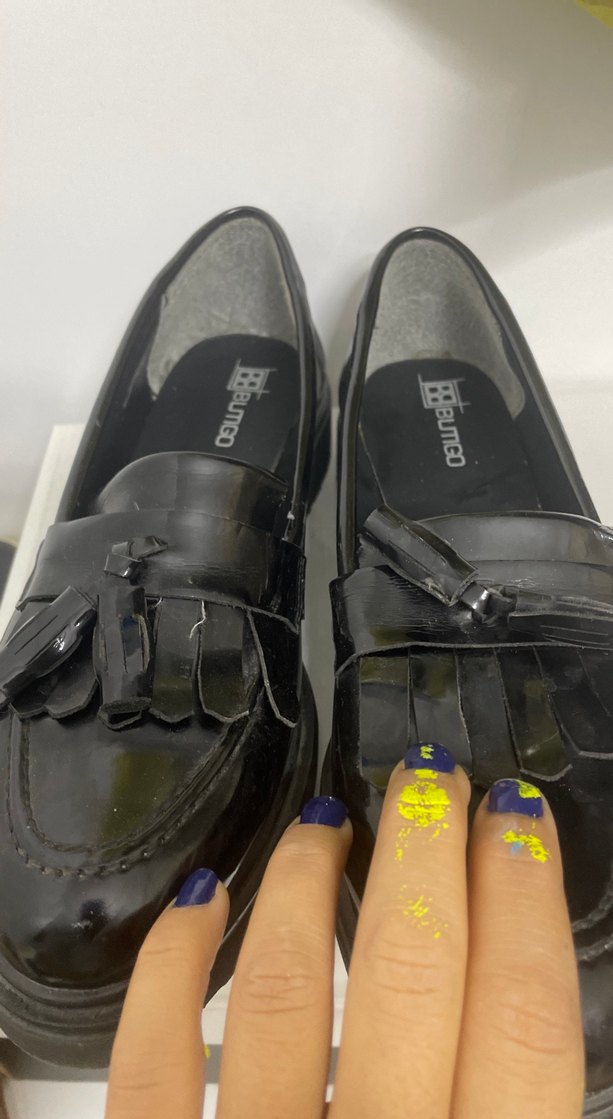 Parlak kauçuk malzemeden yapılmış, tokalı siyah gotik tarz kızlar için loafer ayakkabılar. Sifirdan farksiz sorunsuz 3 ay once aljndi buyuk geliyor
