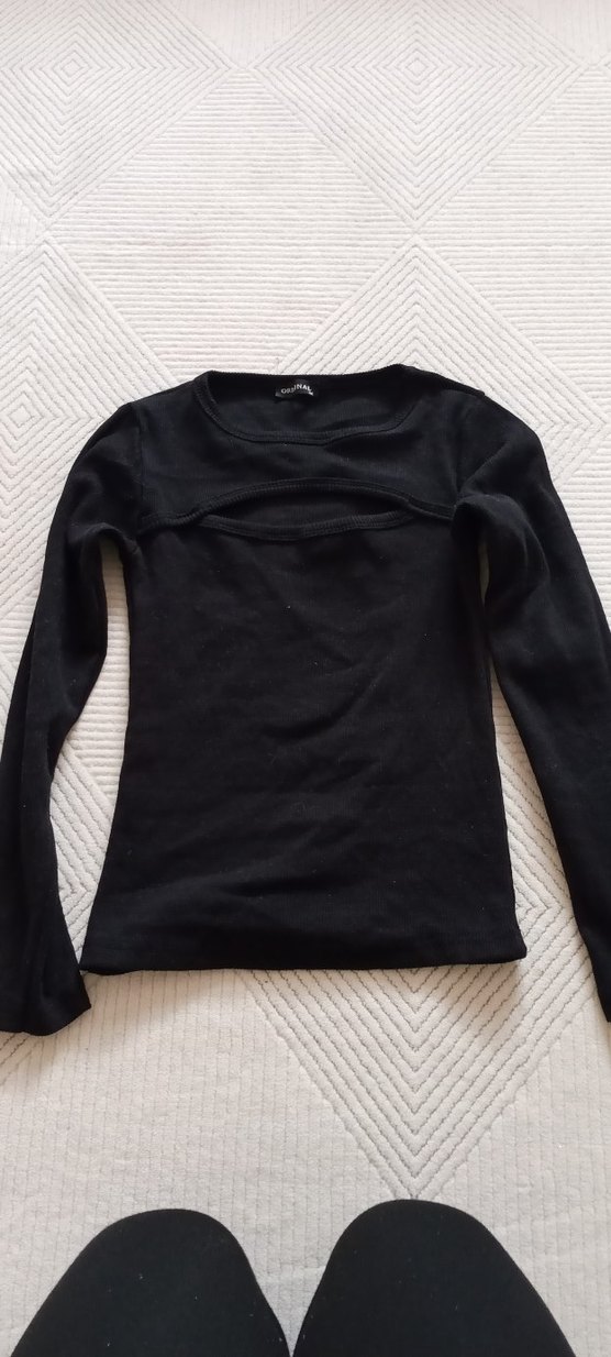 Siyah, uzun kollu ve bisiklet yaka kazak . Yumuşak keten kumaştan, sade ve hafif gotik tarzda, rahat şıklık sunar. göğüs dekolteli benzer yesili de var profilide onun gibi dekoltesi