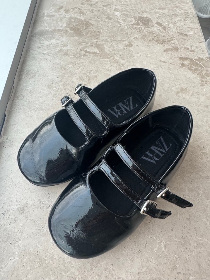 Kızlar için yılan desenli siyah babetler, tokalı bantlarla ve kauçuk malzemeden yapılmıştır. ZARA markasına ait, gotik ve modaya uygun bir tarza sahiptir.