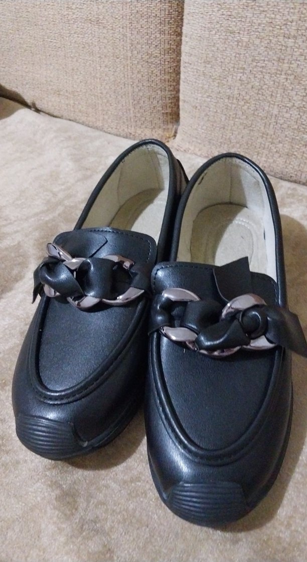Kızlar için siyah kauçuk loafer ayakkabılar, tokalı zincir detayıyla trendy goth tarzı sunar, desensiz ve sade yapıya sahiptir. 38 numaradır kullanılmamış yeni