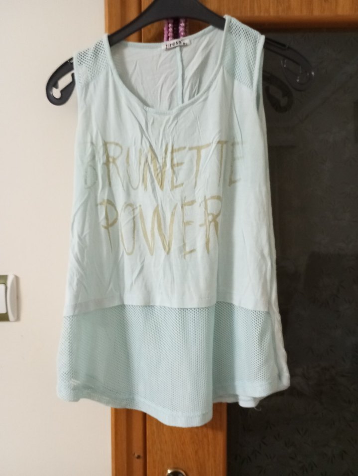 Turkuaz renkli, pamuklu, kolsuz ve bol kesimli kız tişörtü. Baskılı ve fırfırlı detaylara sahip, rahat ve şık bir günlük model.