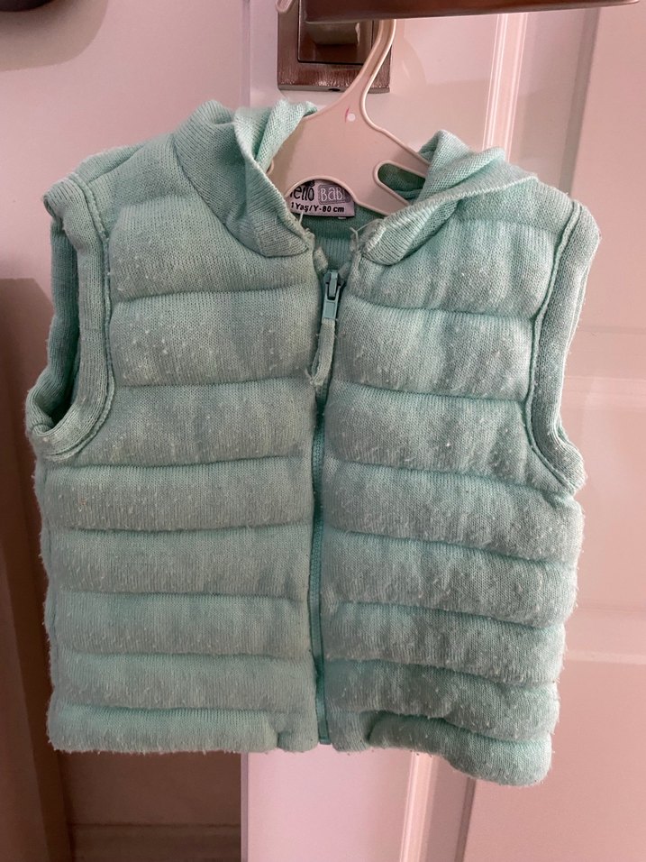 Turkuaz renkli, yüksek yakalı, triko dokulu, yumuşak ve sıcak kumaştan yapılmış erkek çocuk yeleği. Kolsuz ve trend sokak tarzına uygun.