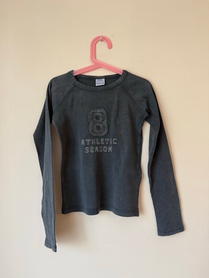 Kızlar için Uzun Kollu Gri Denim Tişört