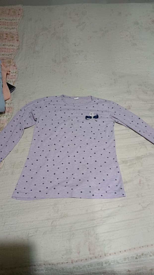Pamuklu, uzun kollu, gri renkli kız tişörtü. Bol kesim, yuvarlak yaka ve düğmeli detaylara sahip, yıldız desenli rahat bir modeldir. ⭐