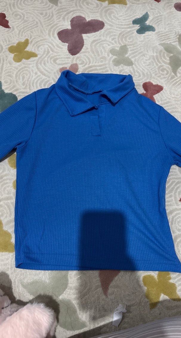 Kızlar için Uzun Kollu Mavi Polo Tişört