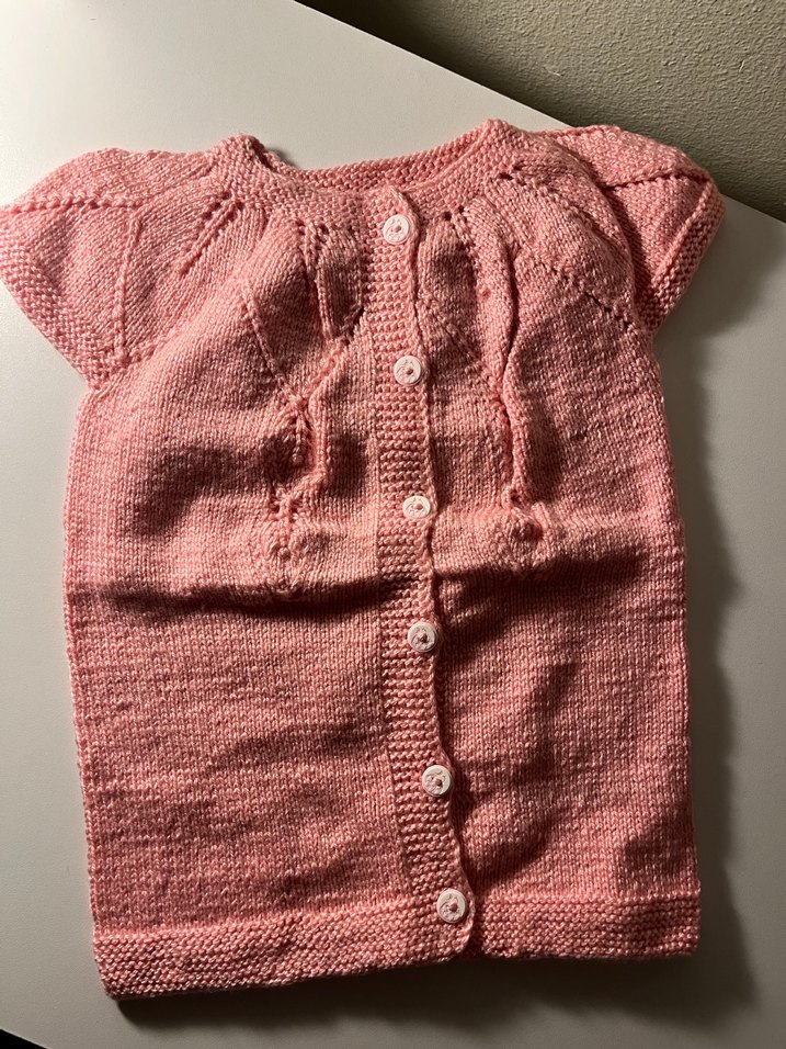 Bu pembe kolsuz hırka, yumuşak örme kumaştan yapılmış, vintage tarzında ve düğmeli kapamalıdır.