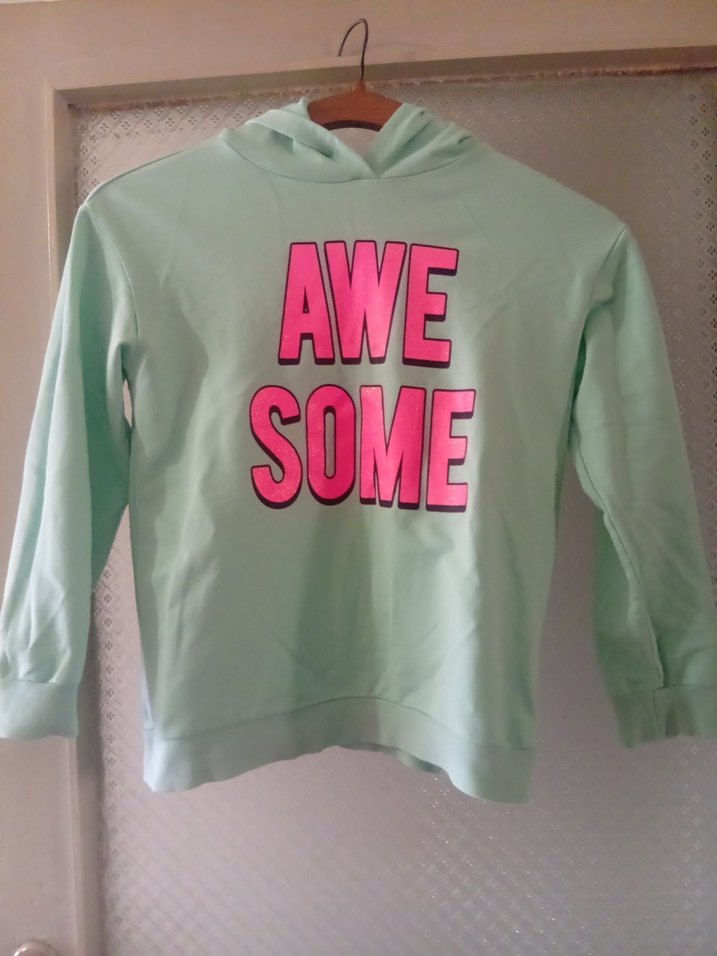 Uzun kollu, yeşil pastel renkli, kapüşonlu ve baskılı kız sweatshirtü. Velcro detaylı, rahat kesim ve yumuşak sentetik kumaştan yapılmıştır. Kız çocuk 9,10 yaş sweatshirt kusursuzdur #kızçocuksweatshırt #kızsweat