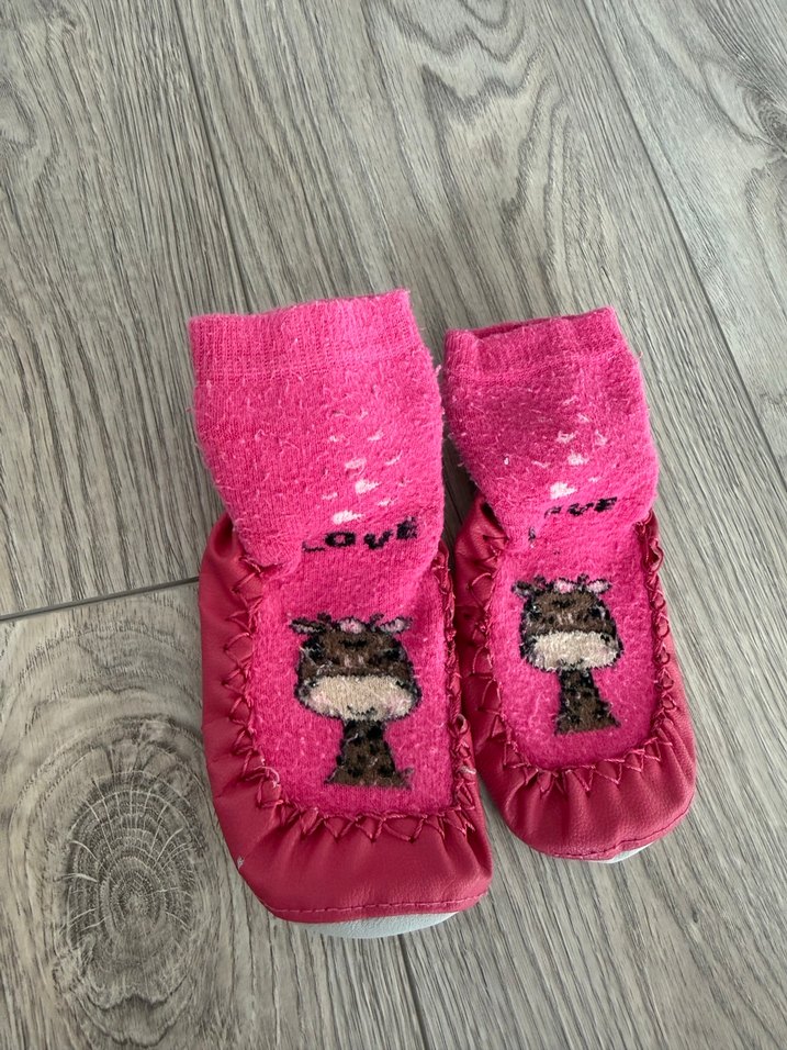 Kızlar için pembe, nakışlı ve örgü detaylı sıcak terlikler. Yumuşak kumaşıyla ayakları sıcak tutar, bohem tarzı yansıtır.