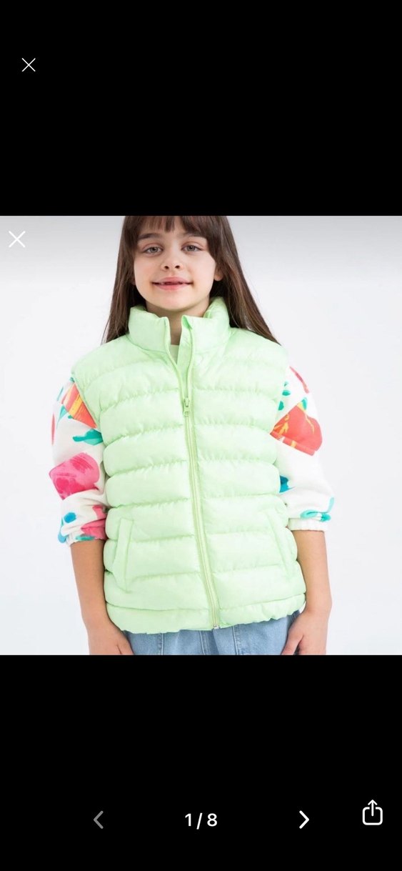 Kızlar için yüksek yakalı, şişme tasarımlı, pastel çok renkli, dar kesim ve kolsuz yelek. Yumuşak ve sıcak kumaştan üretilmiştir.