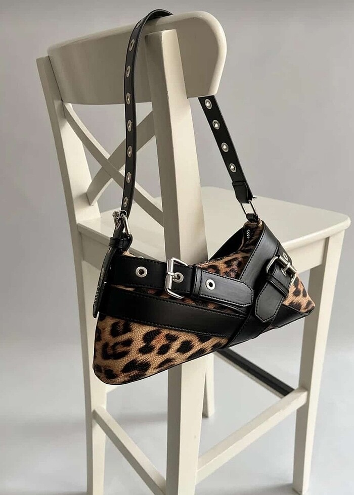KLAPA DETAYLI LEOPAR DESENLİ SİYAH ÇANTA