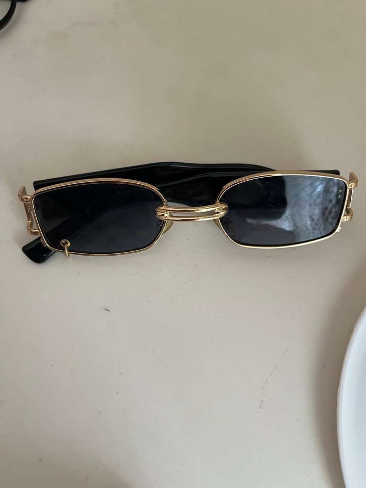 Kadınlar için koyu camlı ve altın çerçeveli klasik ve şık sokak stiline uygun güneş gözlüğü. ️