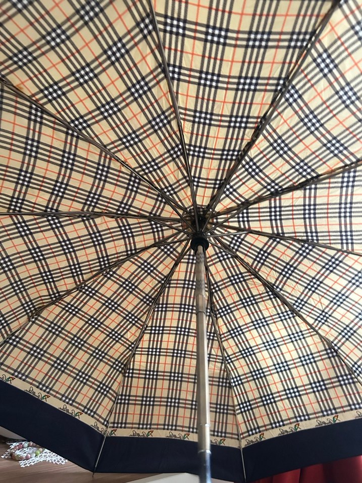 Kadınlar için bej renkli, pileli klasik Paris tarzı kareli desenli şemsiye. Geleneksel ve şık tasarım sunar. ☂️