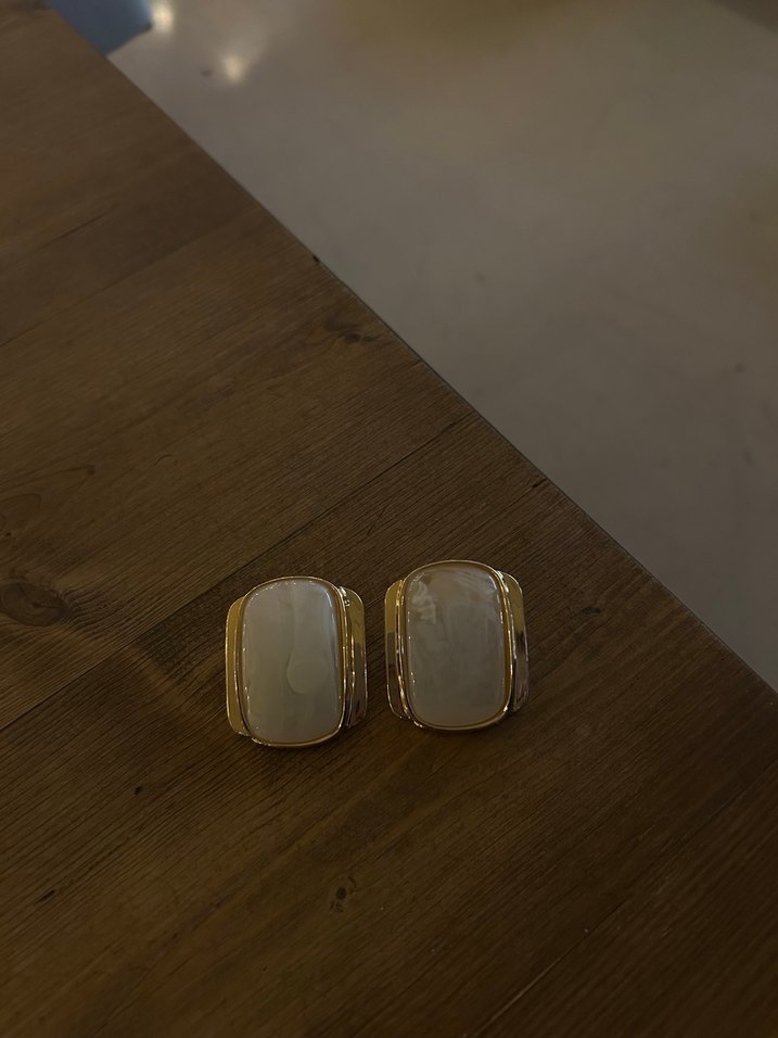 Parlak bej renkte, tokalı detaylı modern klasik tasarıma sahip midi uzunlukta, desensiz ofis tarzı küpeler. ✨