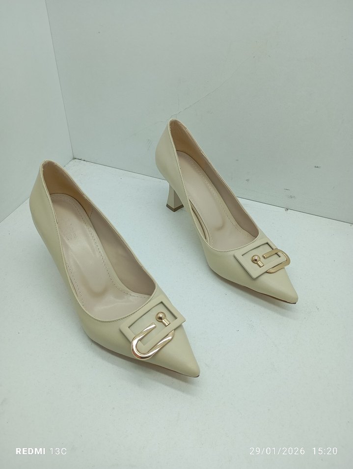 Bej renkte, tokalı klasik stilettolar. Modern klasik tarzıyla ofis kullanımı için uygundur. Kauçuk malzemeden üretilmiştir.