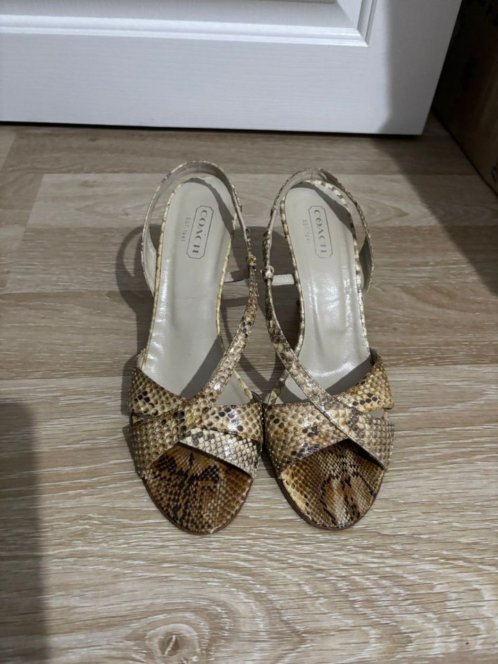 Bej yılan desenli, topuklu ayakkabı. Parlak yüzeyiyle vintage ve çağdaş şıklığı bir arada sunar, düğünler ve gündelik hayat için uygundur.orjinal ürün
