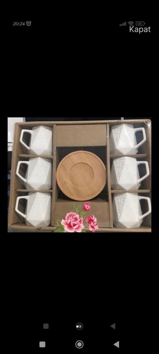 sıfır/kutulu.modern klasik tarzda beyaz altı adet fincan ve ahşap altlıklı set. Fincanlar geometrik ve kabartma detaylara sahiptir. ☕