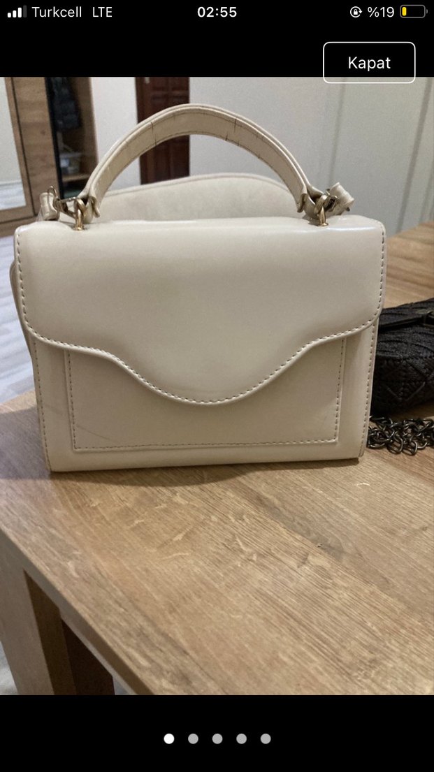 Modern klasik beyaz deri çanta, tokalı tasarımı ve yapılı sapıyla günlük kullanıma uygun, Paris şıklığını yansıtıyor.