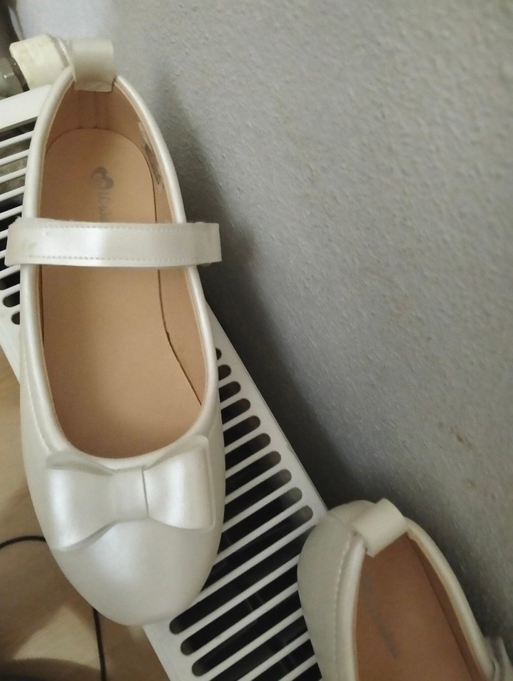 Modern klasik tarzda, fiyonk detaylı beyaz kız babeti. Rahat kauçuk taban ve şık, sade tasarım sunar.