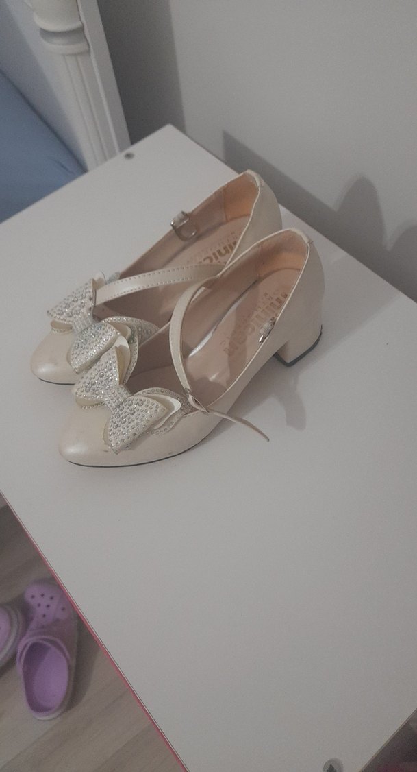 Klasik beyaz kız çocuk ayakkabısı, modern klasik tarzda, fiyonk detayı ve hafif kauçuk tabanlıdır. Özel günler için uygundur.Ayni modeller şu an 750 ile 1000 tl arasında satışta tek seferlik iicn bu kadar para vermeye değmiyor
