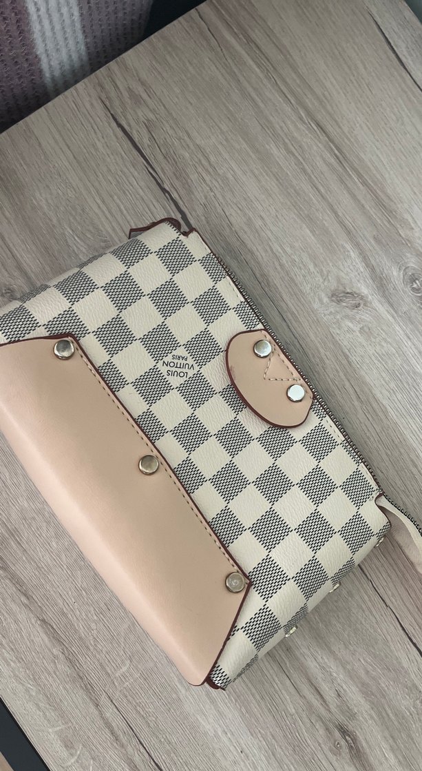 Beyaz deri üzerine hafif kareli desenli, tokalı kapamalı kadın clutch. Klasik zarafeti modern tarzla buluşturur, günlük kullanıma uygundur.