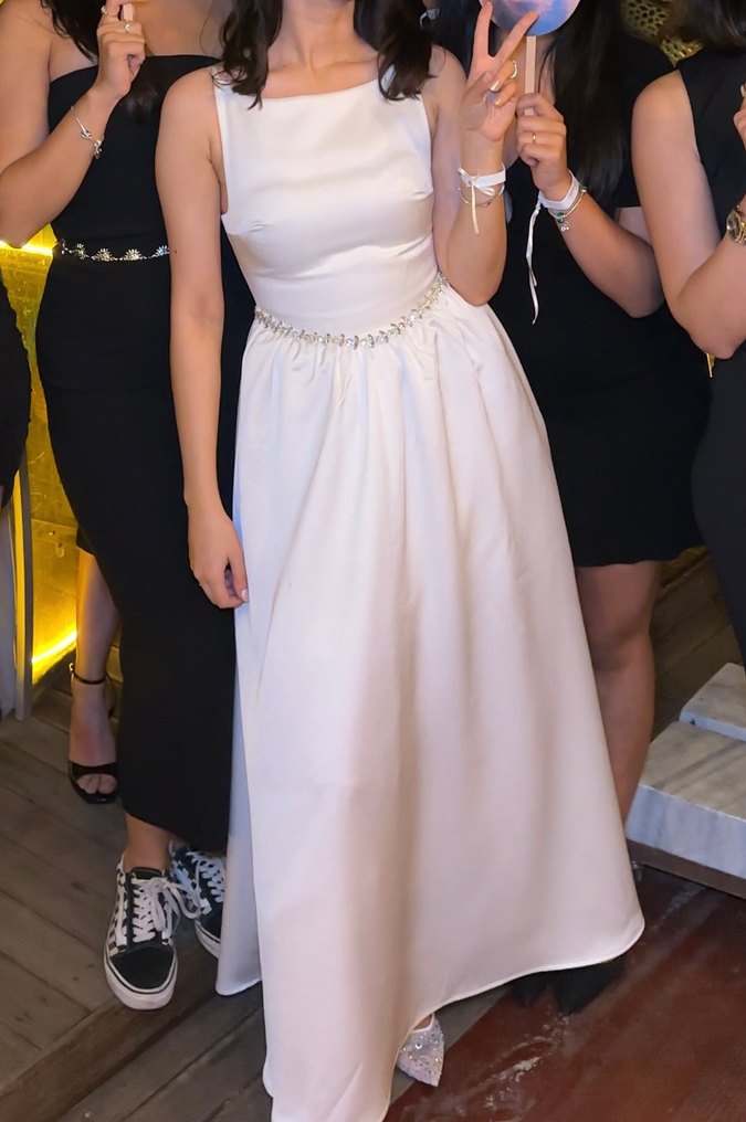 Klasik Beyaz Uzun A Kesim beyaz elbise