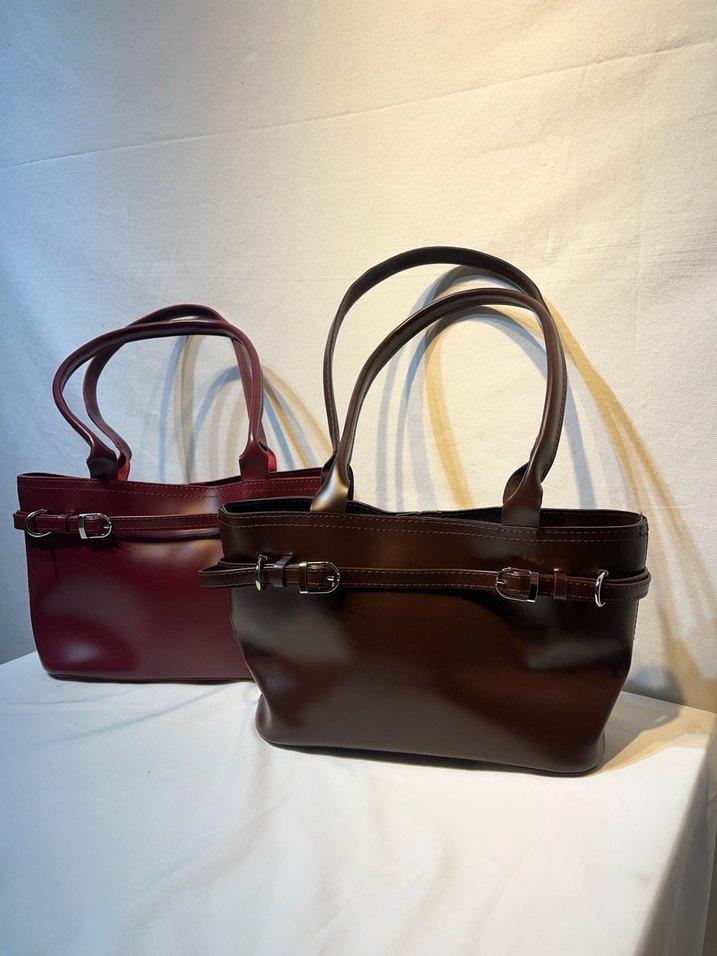 Bordo deri kadın çanta, tokalı tasarımı ve modern klasik stiliyle günlük kullanım için uygundur. Koyu renk ve desensiz şık görünüm sunar.