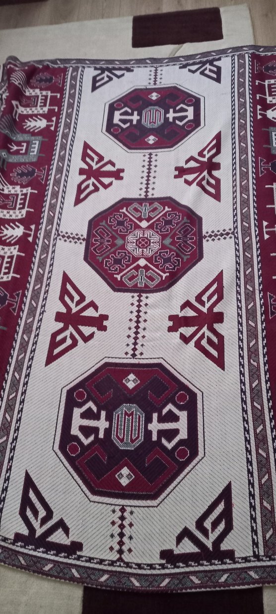 Koyu bordo tonlarında desenli klasik tarzda bir halı örtüsü yada pike mekana geleneksel bir hava katar. vintage iki adet mevcut