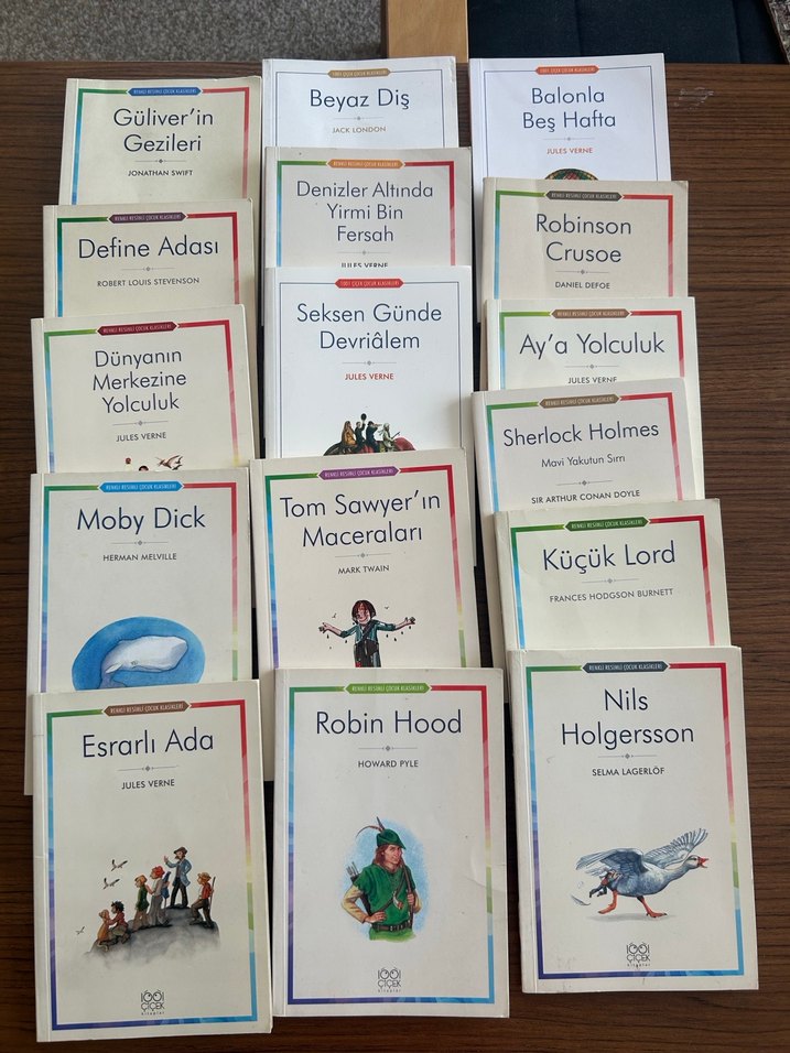 Gulliver'in Gezileri, Moby Dick, Sherlock Holmes ve Robin Hood gibi klasik çocuk kitaplarından oluşan bir set. 1001 çiçek yayınları Temiz ve özenli kullanılmış