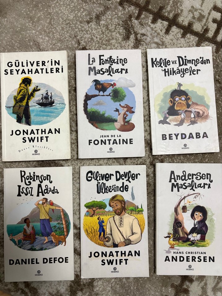 Jonathan Swift, Jean de La Fontaine, Beydaba, Daniel Defoe ve Hans Christian Andersen'in klasik çocuk kitaplarından oluşan 6 kitaplık set.