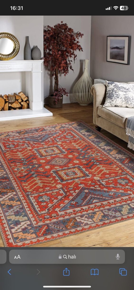 Klasik tarzda, koyu ve çok renkli desenlere sahip bu halı, mekâna sıcaklık ve karakter katıyor. Geleneksel motiflerle zengin renkler bir arada.