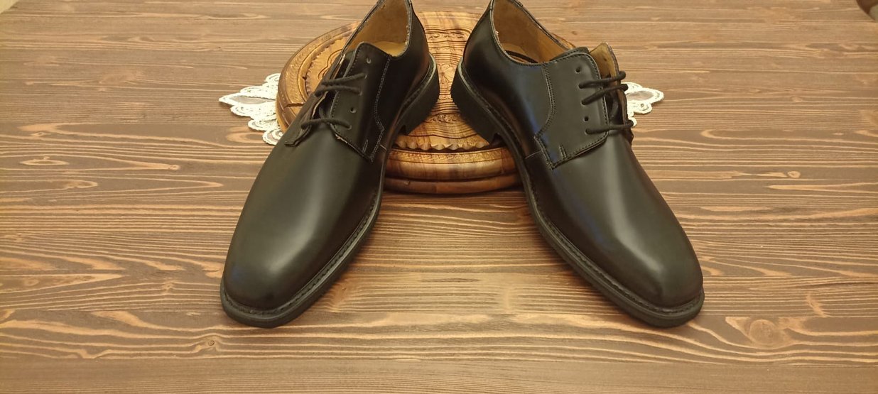 Klasik siyah erkek ofis ayakkabısı, konvansiyonel tarzda, tokalı ve dayanıklı kauçuk tabanlıdır.Hiç kullanılmamıştır