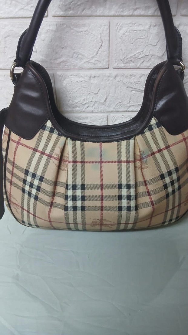 Koyu bej renkli, desenli deri kadin çanta, tokalı detaylara sahip. Modern klasik tarzı ve Paris şıklığını yansıtır, günlük kullanım için uygundur. Orijinaldir