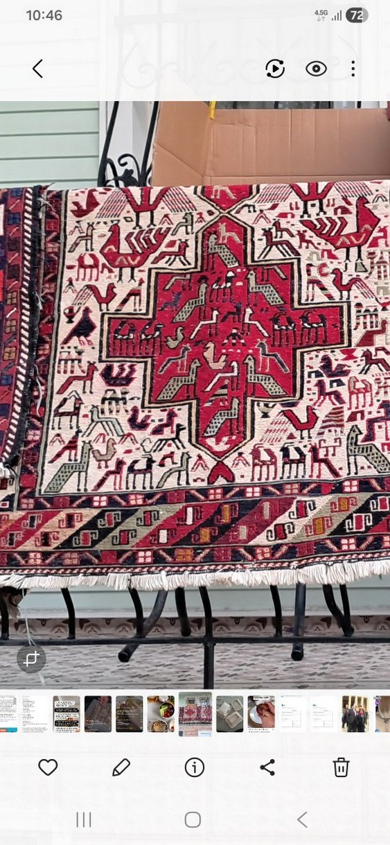 Klasik tarzda, koyu renkli ve çok renkli desenlere sahip halı, karmaşık geometrik ve hayvan motifleri içerir.Van yöresinden.Çok az kullandım.