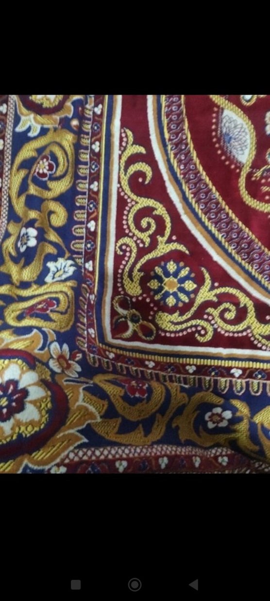 Klasik desenlere sahip koyu çok renkli halı, detaylı çiçek ve süs motifleriyle zengin bir görünüm sunar. antika